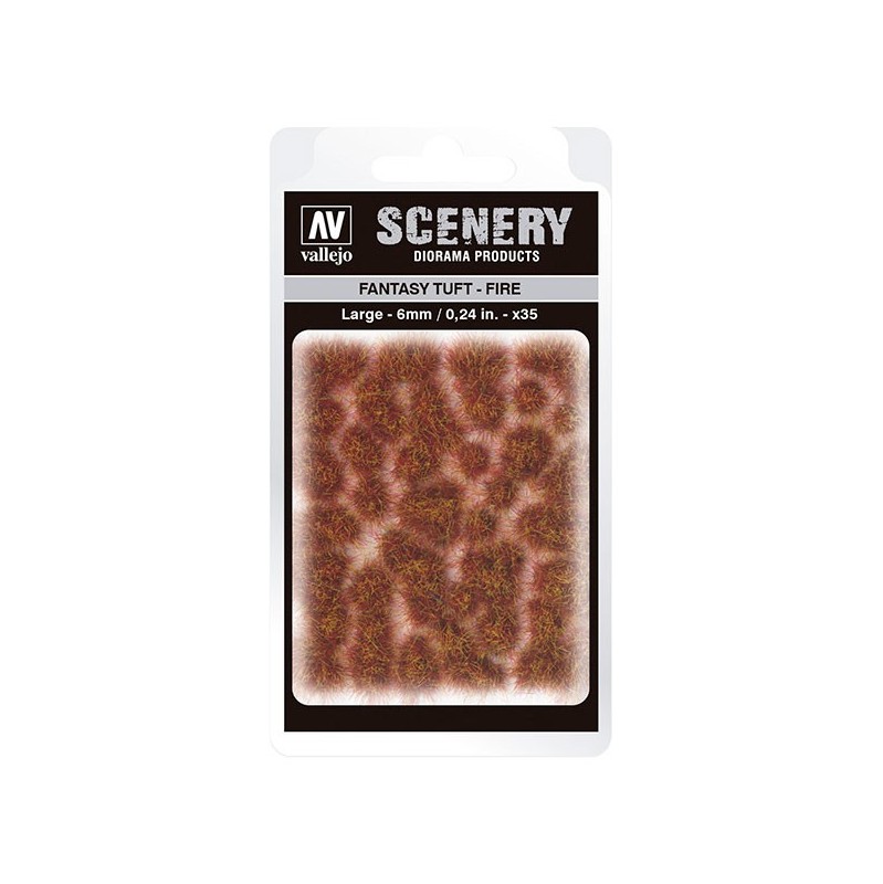 Fantasy Tuft – Fire, 35 unidades de vegetación en miniatura de Vallejo Scenery, autoadhesivas y perfectas para añadir realismo a tus dioramas y maquetas.