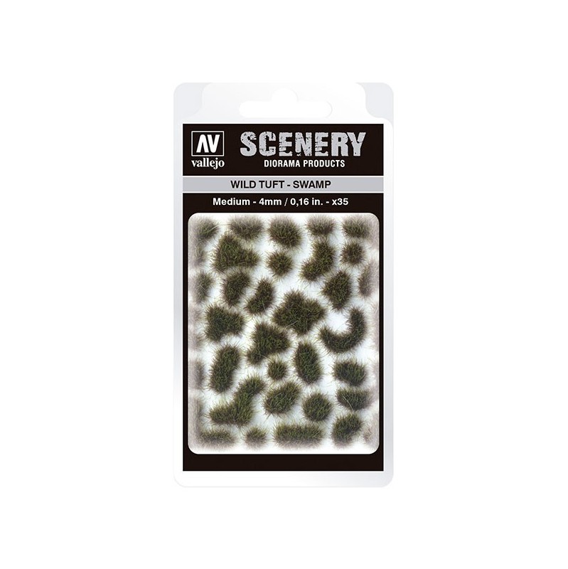 Wild Tuft – Swamp, 35 unidades de vegetación en miniatura de Vallejo Scenery, autoadhesivas y perfectas para añadir realismo a tus dioramas y maquetas.